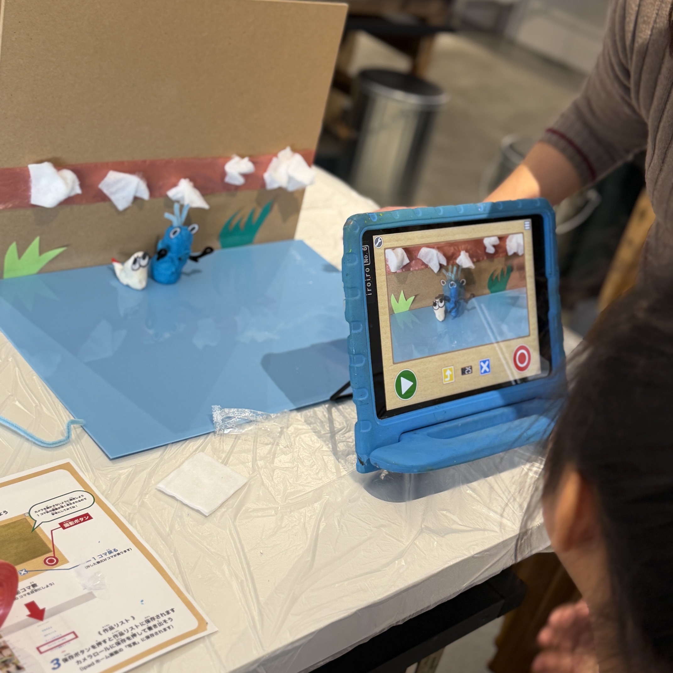 今回初めての講座です♪自分で作ったキャラクターを撮影し、動画にしてタブレットの中で動かしてみよう!アナログとデジタルを融合したワークショップです。TVやCMで見かける動画に興味が湧くきっかけになるかも⁉
